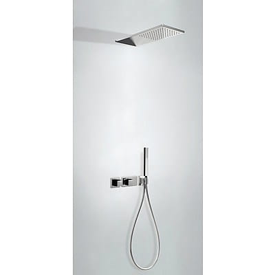 Zestaw natryskowy z baterią termostatyczną BLOCK SYSTEM stal nierdzewna, TRES CUADRO EXCLUSIVE (20725202 AC) z regulacją strumienia (dwudrożną). W zestawie z termostatycznym korpusem podtynkowym.Głowica natryskowa ze stali nierdzewnej 210 x 550 mm. Słuchawka antical. Wąż satin (913460915).
